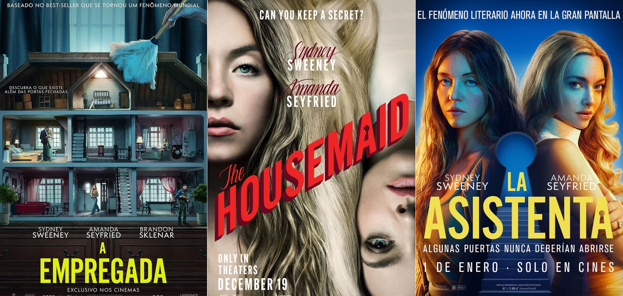 Cartazes do filme ‘A empregada’ em português, inglês e espanhol