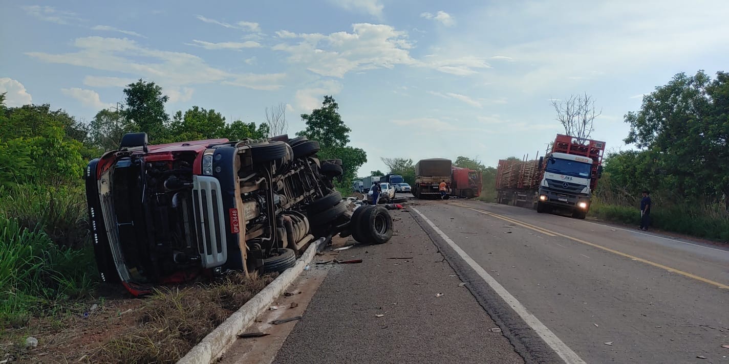 De acordo com a Polícia Rodoviária Federal (PRF), a batida foi por volta das 15h desta terça-feira (21), no km 339. Um dos caminhões tombou e outro ficou na lateral da rodovia, com a cabine danificada. O motoristas de um dos caminhões teria passado mal e invadido a contramão, segundo a PRF.