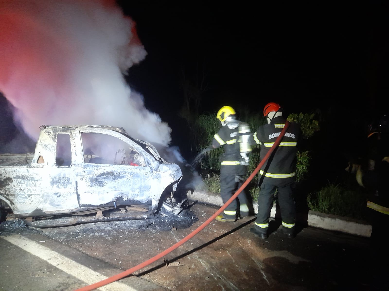 Corpo de Bombeiros apagou incêndio em caminhonete na BR-153