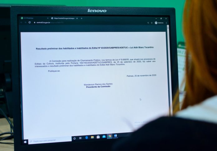 Aos inabilitados, o prazo para interposição de recurso ocorre entre os dias 26 e 27 de novembro, pelo e-mail aldirblancto@cultura.to.gov.br.