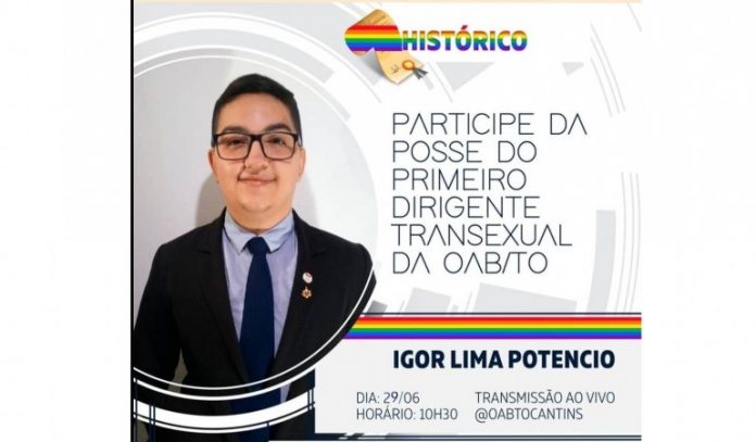 Igor tomaria posse na manhã desta segunda-feira, 29, às 10h, como primeiro dirigente transexual da Ordem de Advogados do Tocantins (OAB-TO).