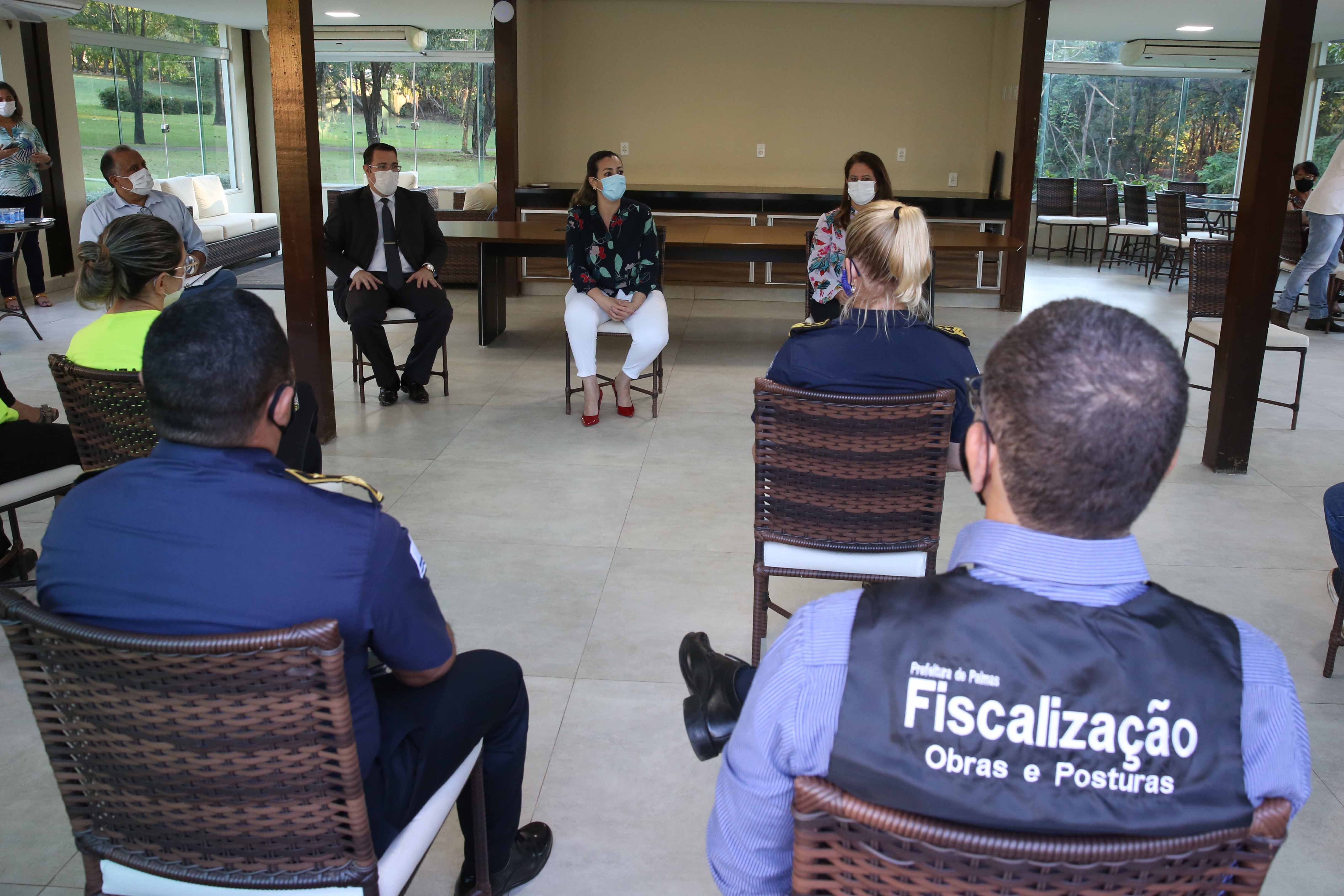 A prefeita de Palmas, Cinthia Ribeiro, se reuniu na tarde desta segunda-feira, 13, com representantes da Guarda Metropolitana de Palmas (GMP), Vigilância Sanitária, Defesa Civil do Município, agentes de Trânsito, agentes de Código e Posturas de Palmas, em uma reunião de trabalho para discutir as ações integradas de fiscalização na Capital em virtude da pandemia do novo coronavírus (Covid-19). Na oportunidade, os profissionais relataram várias situações de desrespeito sofridas durante as operações.