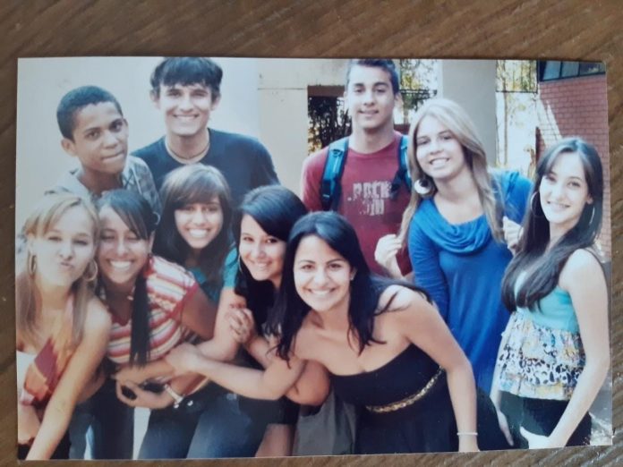 A moradora de Palmas Thaynara Vitorino Borba e a cantora Marília Mendonça se conheceram na adolescência, quando tinham 15 anos. Thaynara (no canto direito, ao lado de Marília) mostra registro da turma em colégio de Goiânia