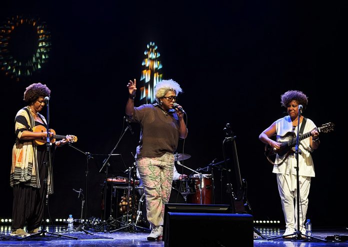 Da mesma forma, foi difícil ouvir Fadas (Luiz Melodia, 1978) sem tirar da mente a gravação feita por Elza Soares (1930 – 2022) para o álbum Do cóccix até o pescoço (2002). Assim como também foi natural lembrar de Maria Rita quando as artistas uniram vozes em Encontros e despedidas (Milton Nascimento e Fernando Brant, 1981), reafirmando que o show é dominado pelo samba, mas não restrito ao gênero, tendo como eixo central as obras de compositores negros de estilos diversos.