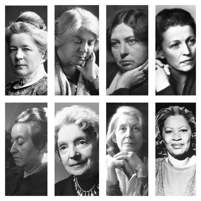 Vencedoras do Nobel em Literatura: (acima) Selma Lagerlöf, Grazia Deledda, Sigrid Undset, Pearl Buck. Abaixo: Gabriela Mistral, Nelly Sachs, Nadine Gordimer, Toni Morrison