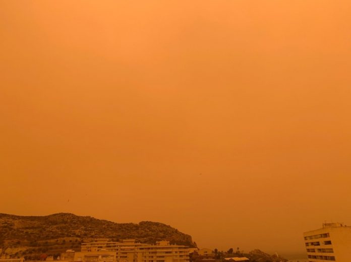 Céu ficou em tom alaranjado. Internautas brincaram com semelhança com o planeta Marte. Foto da cidade de Águilas, no Sul da Espanha, durante tempestade de areia do Saara.