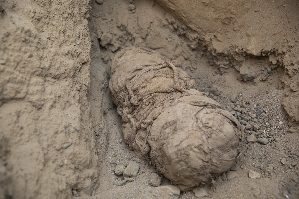 “Os restos mortais de seis crianças envoltos em fardos funerários foram encontrados perto do túmulo de um personagem da elite [da época]”, cuja múmia já havia sido encontrada em novembro passado, explicou à AFP o arqueólogo Pieter Van Dalen, coordenador do projeto em Cajamarquilla.
