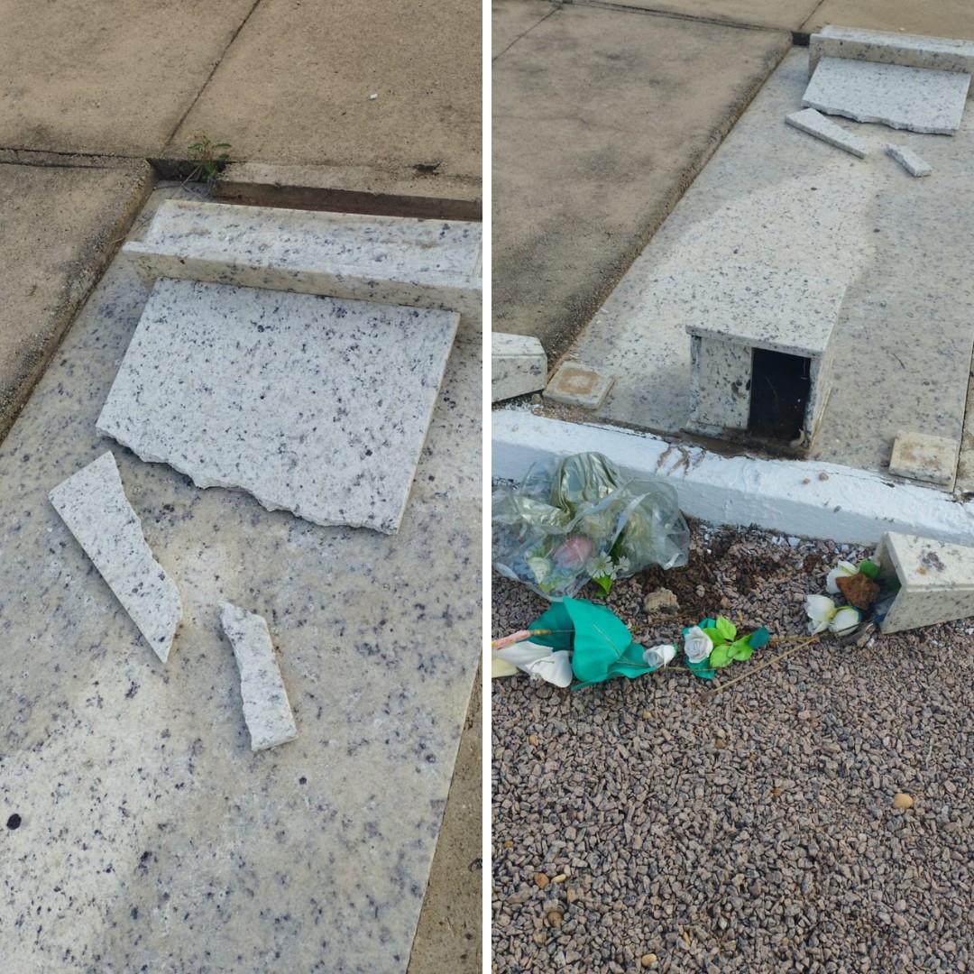Além das lápides, lâmpadas também foram destruídas. Segundo a Prefeitura, casos iniciaram no início de novembro. Cabeceiras de lápides foram encontradas destruídas no cemitério de Paraíso