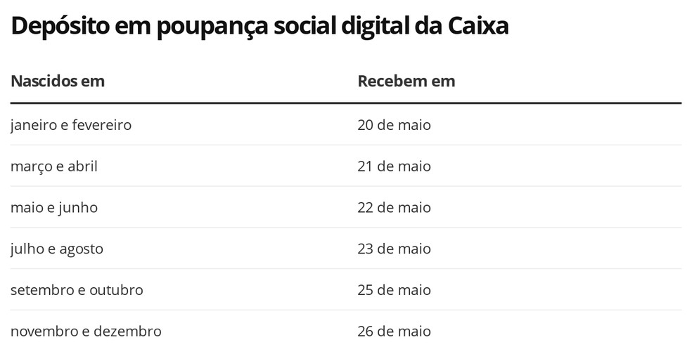 O calendário da segunda parcela vale apenas para quem recebeu a primeira parcela até 30 de abril. O governo não informou quando vai pagar a segunda parcela para quem receber a primeira depois desta data.