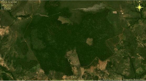 Imagens de satélite obtidas pela investigação revelaram o tamanho da devastação causada pela quadrilha. As imagens são da área chamada de ‘Mata Grande’. É possível perceber que entre janeiro de 2020 e janeiro de 2021 a cobertura vegetal praticamente desapareceu.