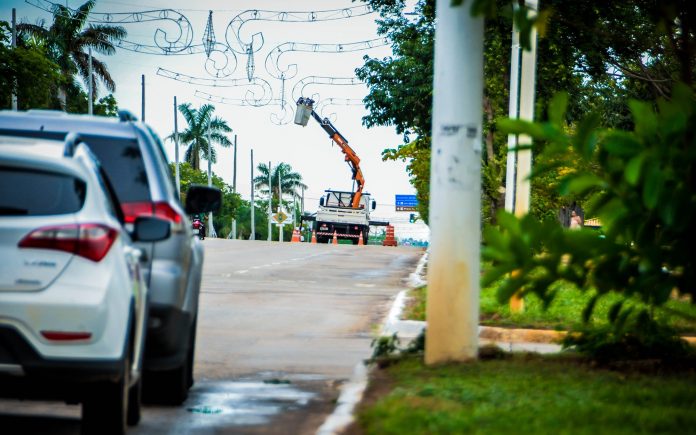 Equipes da Secretaria de Infraestrutura vão montar o tradicional túnel de luzes de LED na avenida. Prefeitura informou que vai fechar duas das quatro faixas da avenida onde a montagem estiver acontecendo. Decoração de Natal vai começar a ser instalada em Palmas