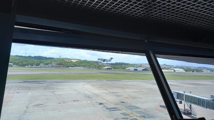 O KC-390 Millennium é mesma aeronave passou pela capital pernambucana na ida para a Europa, em uma parada estratégica. Além de resgatar brasileiros, a missão incluiu o transporte de ajuda humanitária para a Ucrânia.
