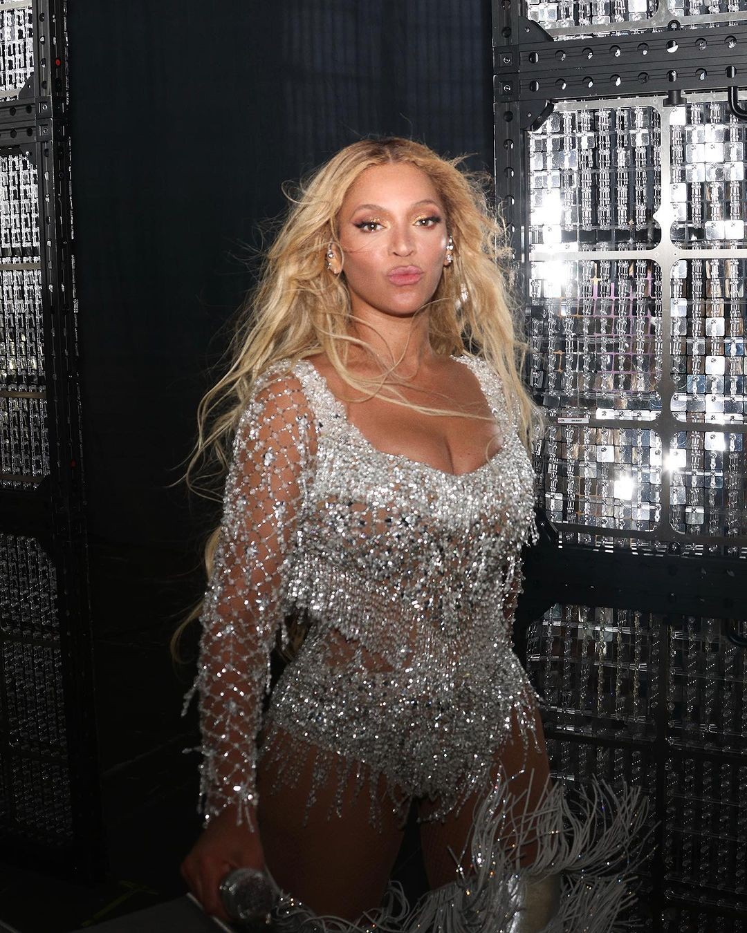 O look da Beyoncé era um body prateado todo bordado e cheio de franjas. A assessoria da PatBO contou que o stylist da cantora foi quem entrou em contato com a marca. E aí, duas peças foram produzidas. A cantora optou pelo body, que demorou nada menos do que 60 dias para ser produzido.