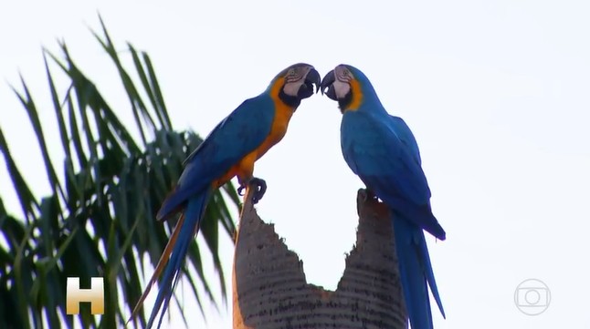 Na principal avenida comercial de Palmas, um casal de aves escolheu o tronco de uma velha palmeira para morar. “Arara-Canindé é uma ave típica da região central do Brasil. Ela é inconfundível porque tem o ventre, a parte inferior amarela e a parte superior azulada, então ela é a única arara com esse padrão de coloração”, disse o biólogo Renato Torres.