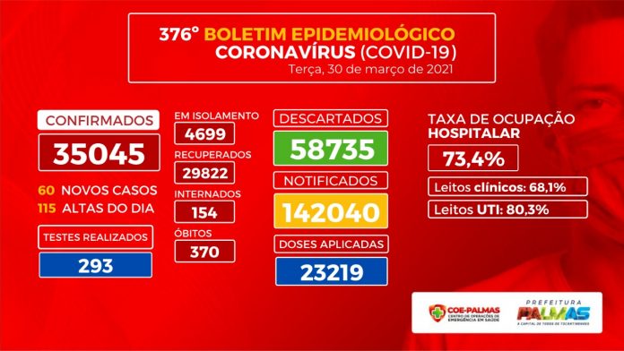 Palmas contabiliza, até o momento, 142.040 notificações para síndromes gripais, números que incluem os casos suspeitos para Covid-19, sendo: 58.735 descartados e 35.045 casos confirmados (números acumulados), dos quais 29.822 encontram-se recuperados após alta de 115 pessoas.