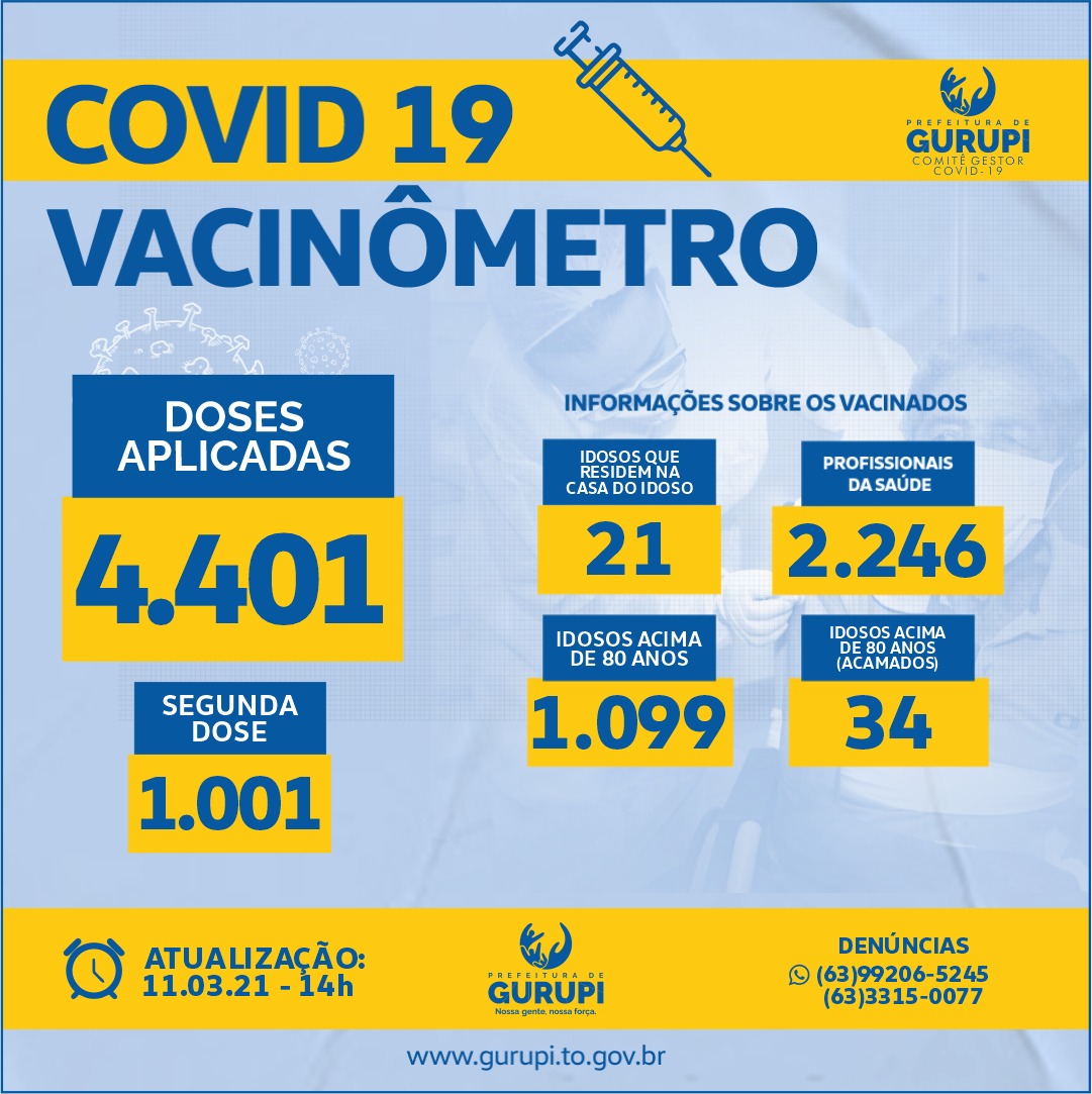 Até às 14h desta quinta-feira,  a coordenação de imunização da Secretaria Municipal de Saúde de Gurupi informou que 4.401 pessoas já foram vacinadas.