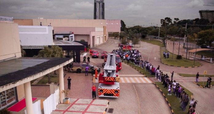Exercício contou com dezenas de profissionais, inclusive, funcionários da brigada de incêndios do estabelecimento. Objetivo era alinha os procedimentos no caso de uma situação real. Simulação contou com dezenas de pessoas