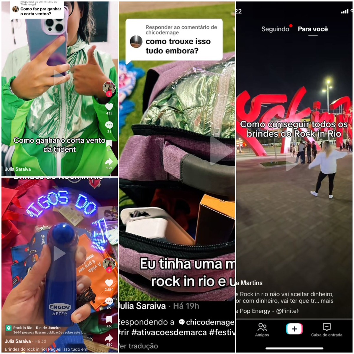 Em outro vídeo, Julia mostra “tudo que ganhou” em um dia de Rock in Rio. É possível ver viseiras, copos, escova de dentes, enxaguante bucal, pochete, porta celular à prova d’água, batom, creme de mãos, leque, ventilador portátil e até uma almofada para pescoço (que ainda a fez concorrer a uma viagem internacional).
