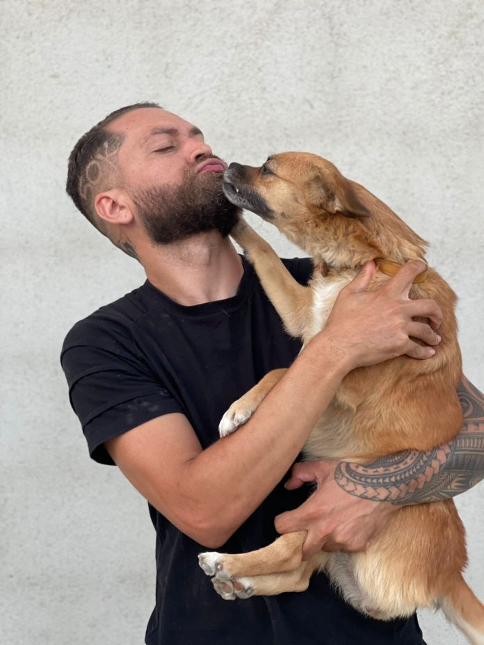 Marcos e a cachorra Solange.