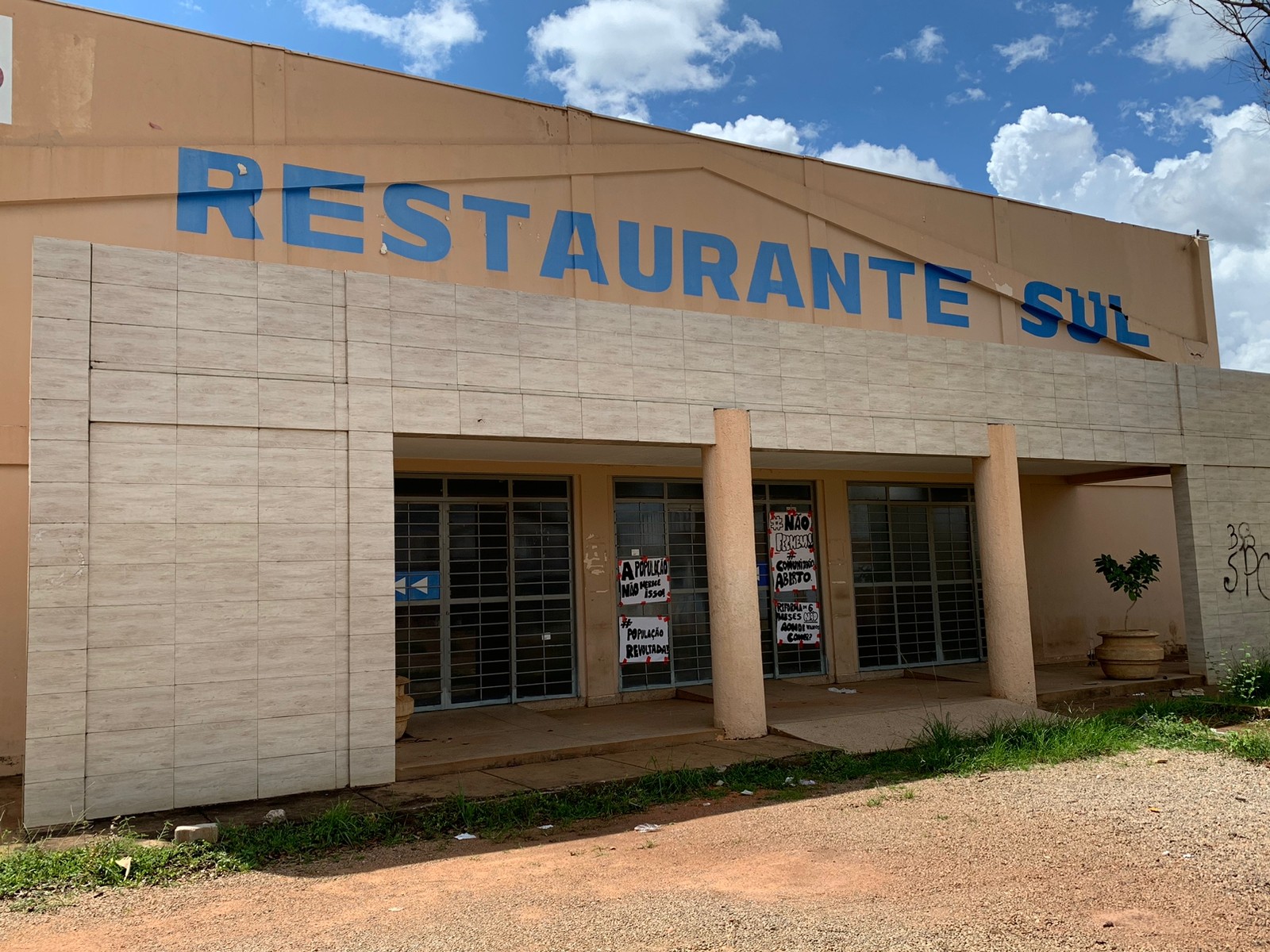 Cartazes de protesto contra o fechamento do restaurante comunitário da região sul de Palmas