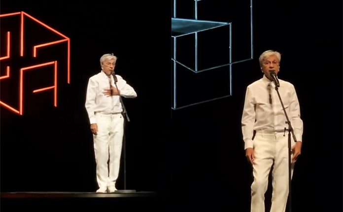 Nunca incluída na discografia do artista, música de 1982 é momento inesperado em roteiro que harmoniza sucessos da década de 1970 e composições do primoroso disco de 2021. Caetano Veloso no palco do Palácio das Artes na estreia do show ‘Meu coco’