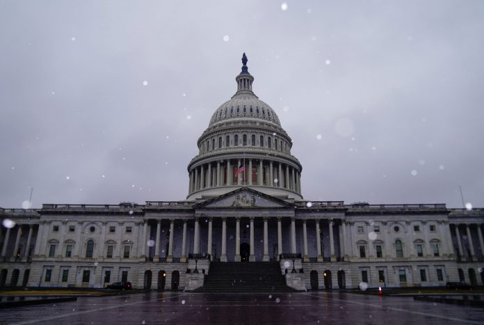 Limite chega a US$ 28,9 tri a seis dias de os EUA ficarem impedidos de pedir dinheiro pela 1ª vez na história. Fachada do Capitólio dos EUA, sede do Congresso americano, em 11 de fevereiro de 2021