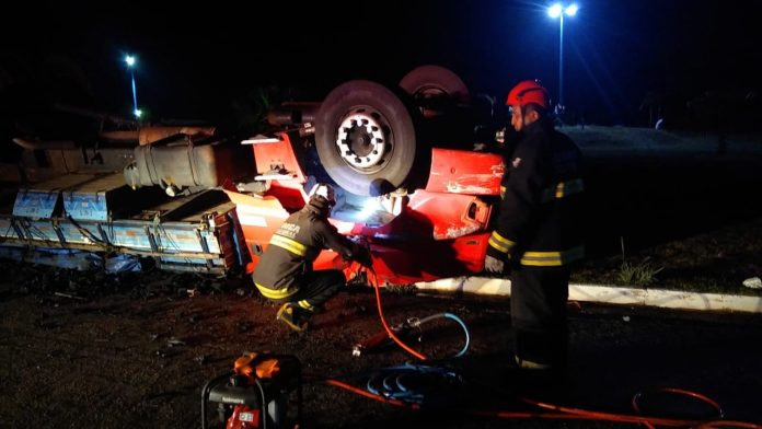Um motorista morreu após o caminhão que ele dirigia capotar na rotatória da saída de Miracema do Tocantins para Palmas na madrugada deste sábado (25). A vítima, segundo o Corpo de Bombeiros, é Stanislau Silva Lima, de 28 anos. Ele não resistiu aos ferimentos após ficar preso às ferragens.