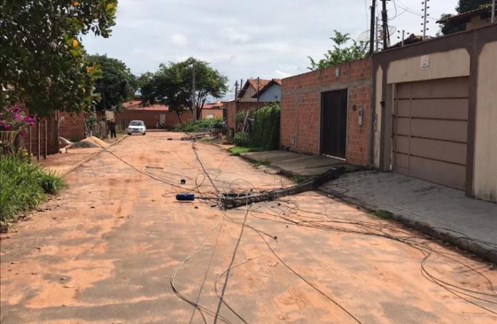 Além dos postes derrubados, os padrões da rede de energia de várias residências e até o telhado de uma casa foram danificados. Os cabos de energia e internet ficaram espalhados no meio da rua.