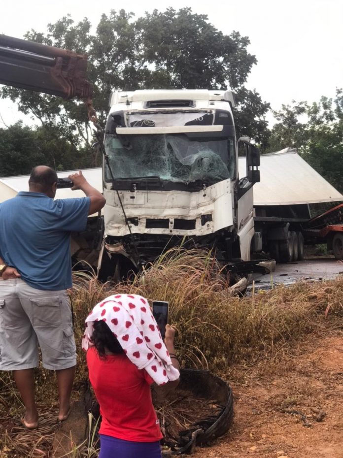 Dois caminhões tombaram na tarde desta quinta-feira (3) após baterem na BR-153, perto de Formoso do Araguaia, no sul do estado. O acidente foi na altura do km 708 e acabou gerando a interdição total da pista. Segundo a Polícia Rodoviária Federal (PRF) houve apenas ferimentos leves entre os ocupantes dos veículos.