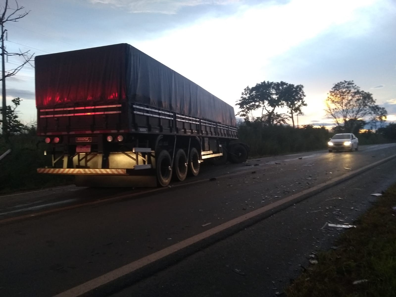 O acidente aconteceu por volta das 5h44. O motorista do caminhão, com placas de Limeira (SP) e carregado com vergalhões de ferro, contou que trafegava pela rodovia em direção a Palmas, quando um carro de passeio invadiu a contramão e causou uma batida.