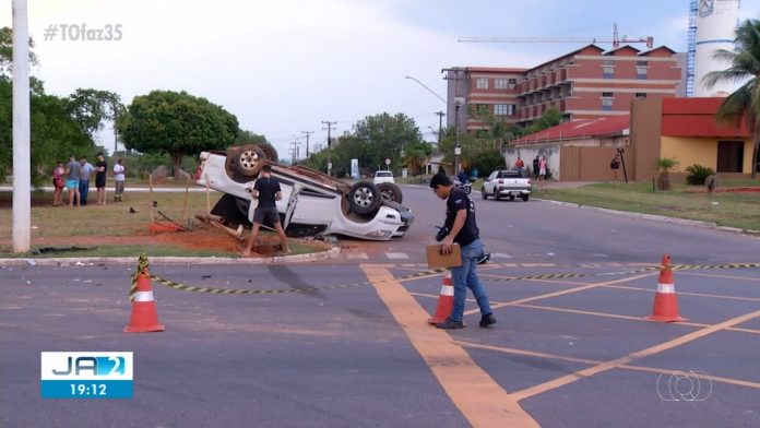 Caminhonete capota e deixa seis jovens feridos em cruzamento de Palmas