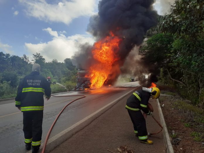 Uma carreta carregada com 30.300 kg de açaí pegou fogo na BR-153 próximo de Paraíso do Tocantins, na região central do estado, na manhã deste sábado (19). A cabine e os pneus do veículo foram completamente destruídos pelas chamas, mas parte da carga foi preservada.