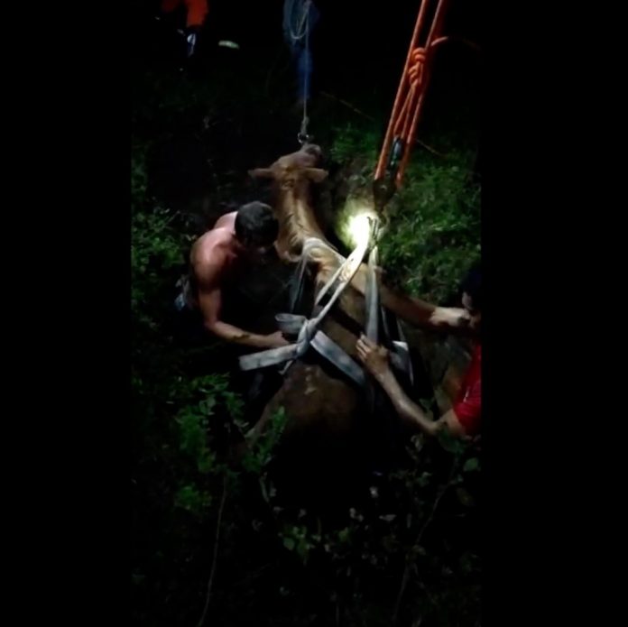 Cavalo caiu em fossa e foi resgatado por bombeiros