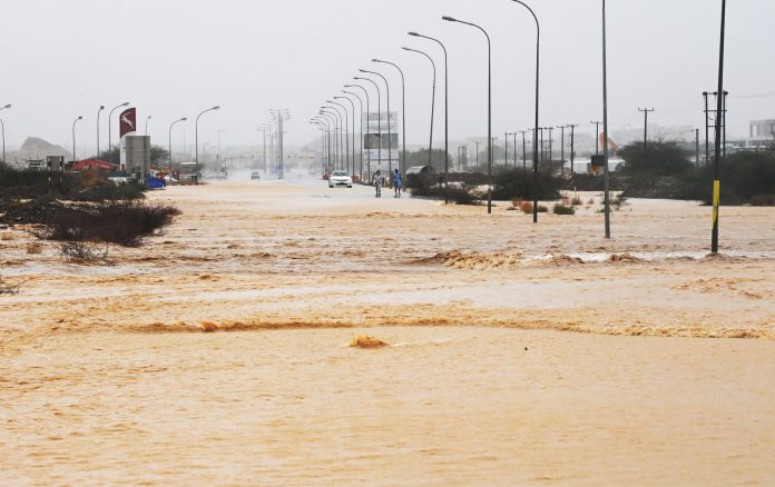 Ruas alagadas em Mascate, capital de Omã, após a chegada do ciclone tropical Shaheen ao país em 3 de outubro de 2021