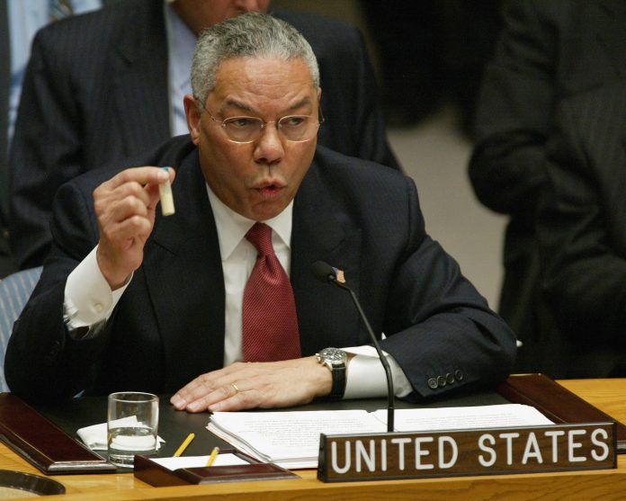 Com um frasquinho de vidro nas mãos, o respeitado general reformado e secretário de Estado americano assegurou, numa exposição de 75 minutos, que o Iraque enganara os inspetores nucleares — pretexto para a invasão do país, seis semanas depois.