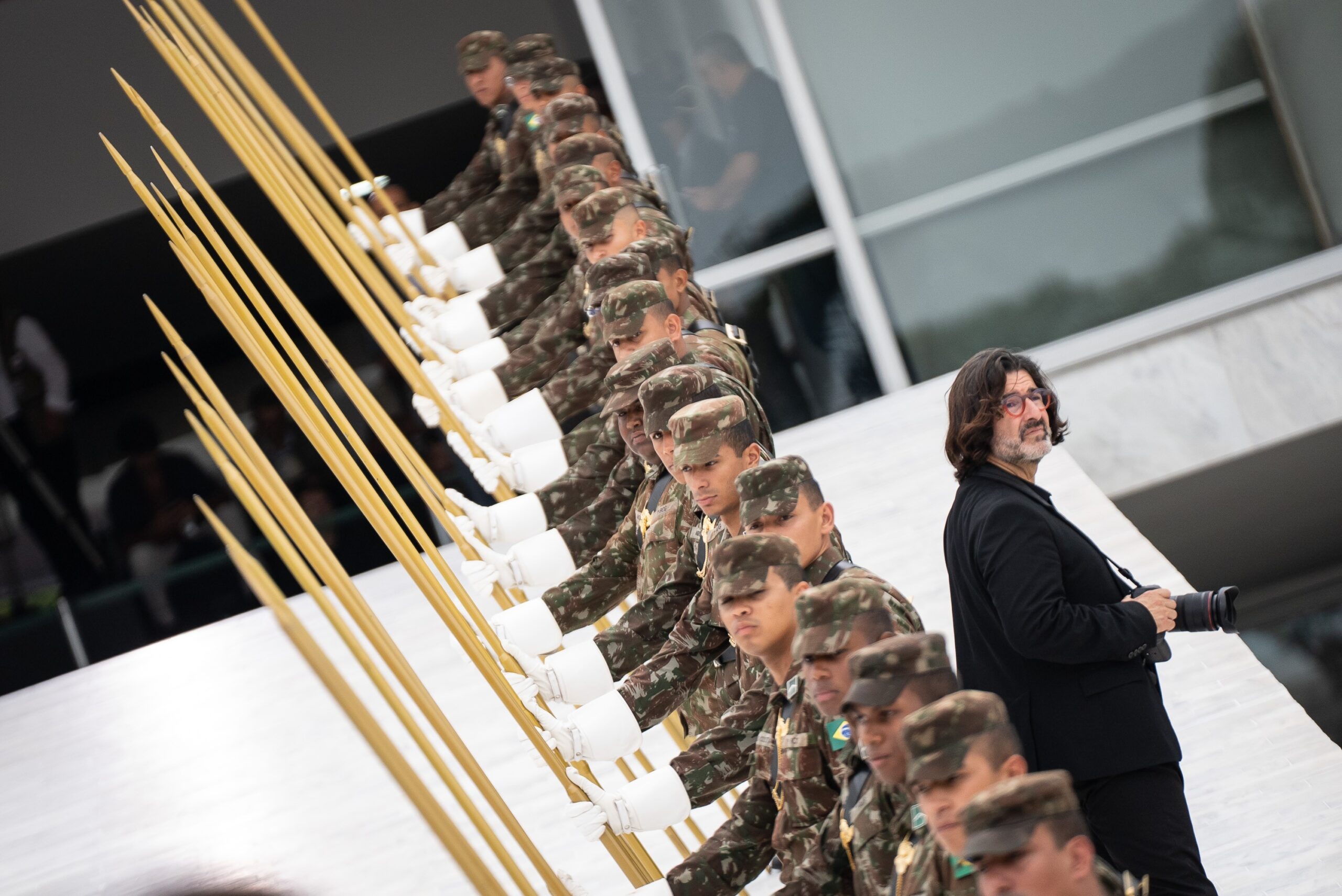 Ao todo 65 delegações internacionais confirmaram presença na posse. Pelo menos 30 chefes de Estado e de governo assistirão o evento. Militares guardam as beiradas da rampa do Palácio do Planalto durante ensaio da posse presidencial que movimentou a Esplanada dos Ministérios nesta sexta-feira (30). À direita, Ricardo Stuckert, fotógrafo de Lula, que deu orientações para a mídia durante o ensaio