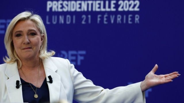Marine Le Pen moderou seu discurso e mudou seu programa para atrair eleitores que tradicionalmente votam em partidos de esquerda. O presidente Emmanuel Macron lidera todas as pesquisas, com 30% a 31%. Le Pen, com 16% a 19% das intenções de votos, tem novamente chances de ir para o segundo turno. Marine Le Pen moderou seu discurso e mudou programa para atrair eleitores que tradicionalmente votam em partidos de esquerda