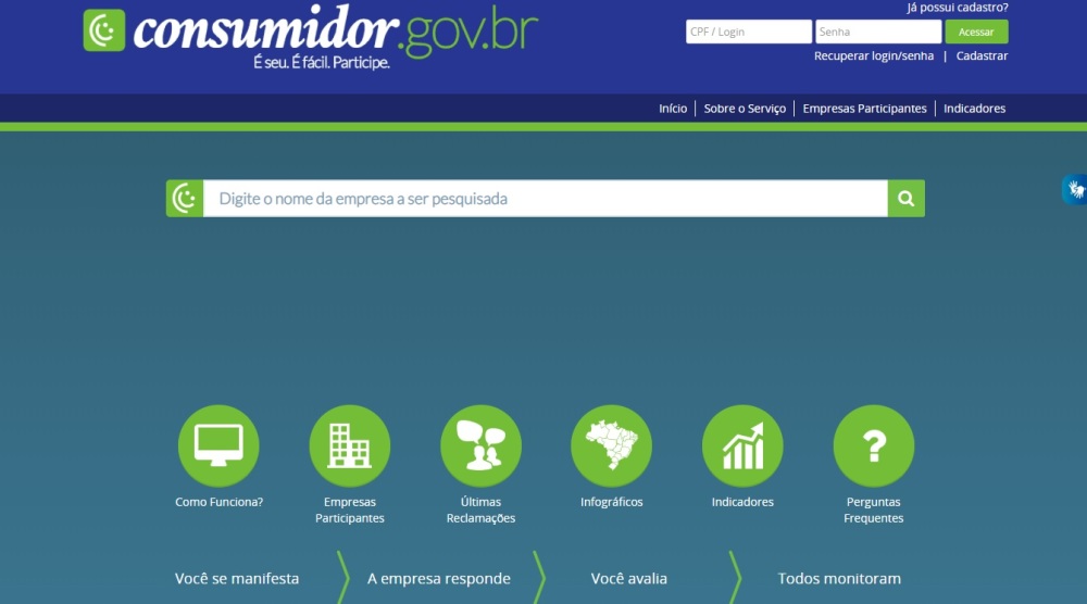 Para participar, o consumidor deverá realizar o seu registro na plataforma www.consumidor.gov.br e criar um login e senha, caso o consumidor já tenha o cadastro é só dar continuidade ao próximo passo.