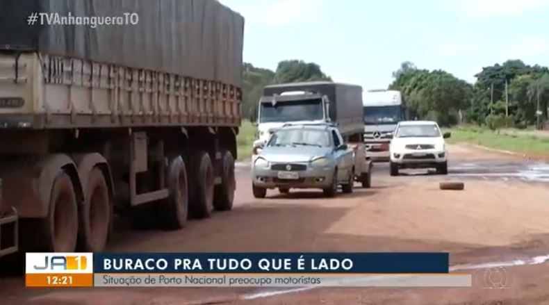 Motoristas que chegam a Porto Nacional, distante 60 km de Palmas, estão preocupados com a quantidade de buracos que se formam nas vias. Em trecho onde fica o portal de entrada da cidade, verdadeiras crateras causam a lentidão no trânsito, além do risco de acidentes. No trevo Sul, que dá acesso às TO-050, TO-255 e a BR-153, o tráfego está comprometido com a quantidade de buracos. A cidade é rota de escoamento de grãos e ainda dá acesso à região do Jalapão.