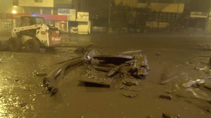 Chuvas torrenciais na noite de segunda-feira causaram um acúmulo de água em um desfiladeiro perto dos bairros operários de La Gasca e La Comuna, jogando lama e pedras em residências e afetando o fornecimento de eletricidade.