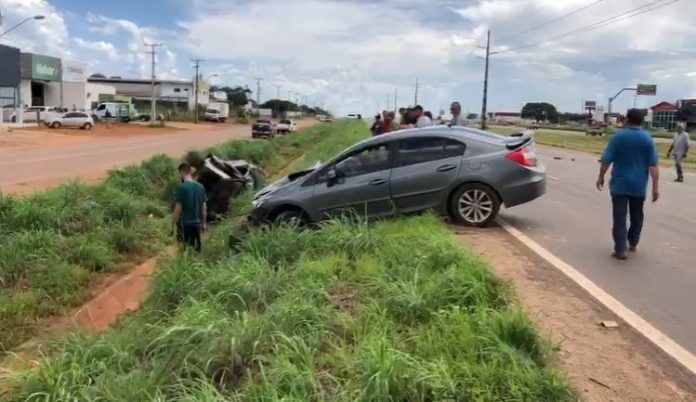 Acidente aconteceu no início da tarde desta segunda-feira (30) no sentido Taquaralto/Palmas. Pelo menos duas pessoas foram levadas para o hospital. Acidente entre dois carros na BR-010, no trecho de Palmas