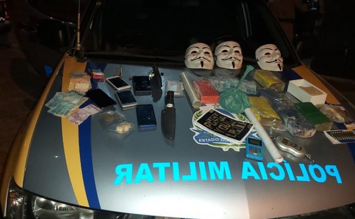 Dois homens são presos pela PM após serem encontrados com drogas, armas e máscaras de ‘V de Vingança’
