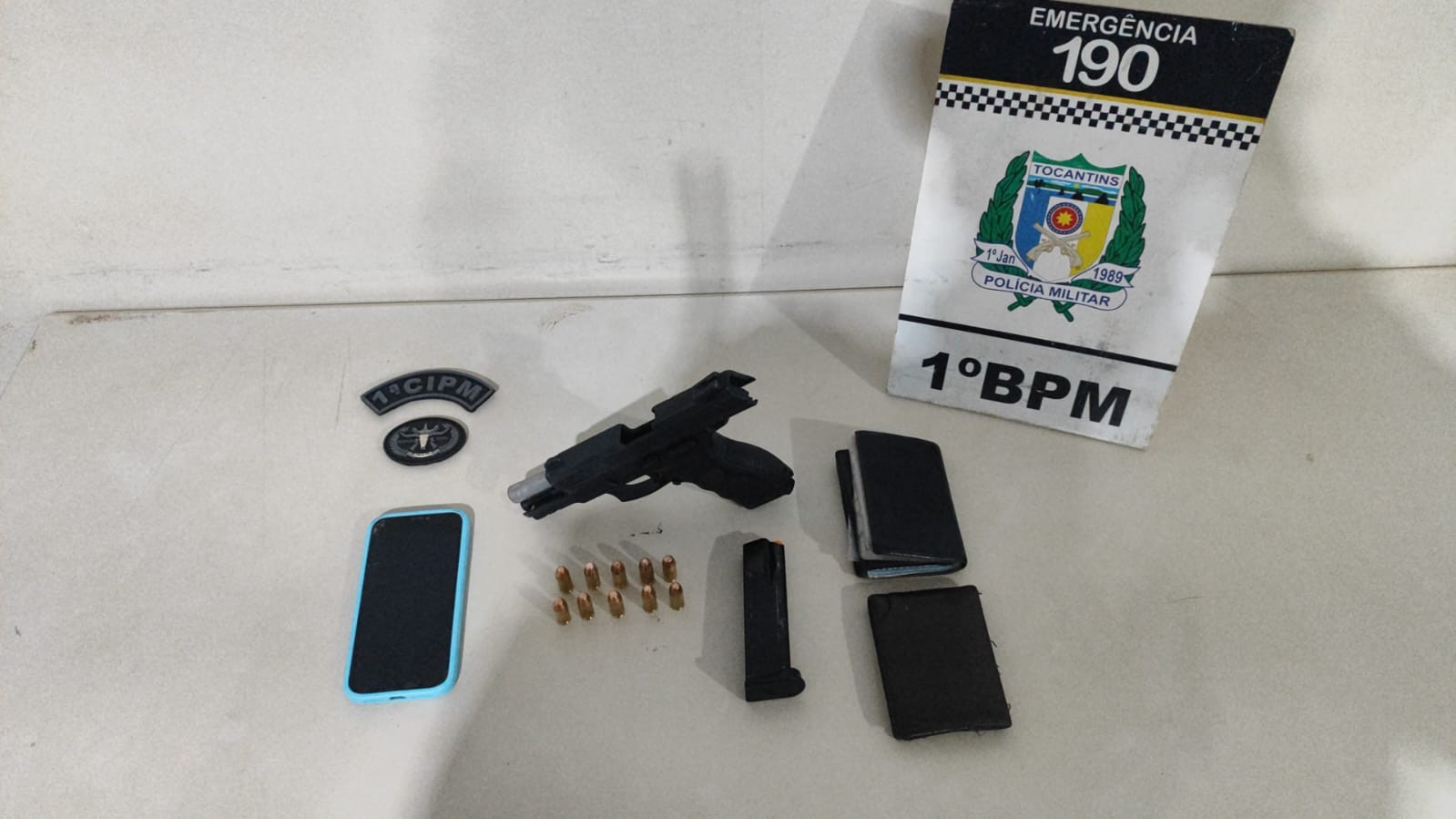 Durante a abordagem, os policiais encontraram uma pistola Taurus TH40 calibre 40 com 10 munições intactas. Os dois homens foram presos e levados para a 1ª Central de Flagrantes de Palmas.