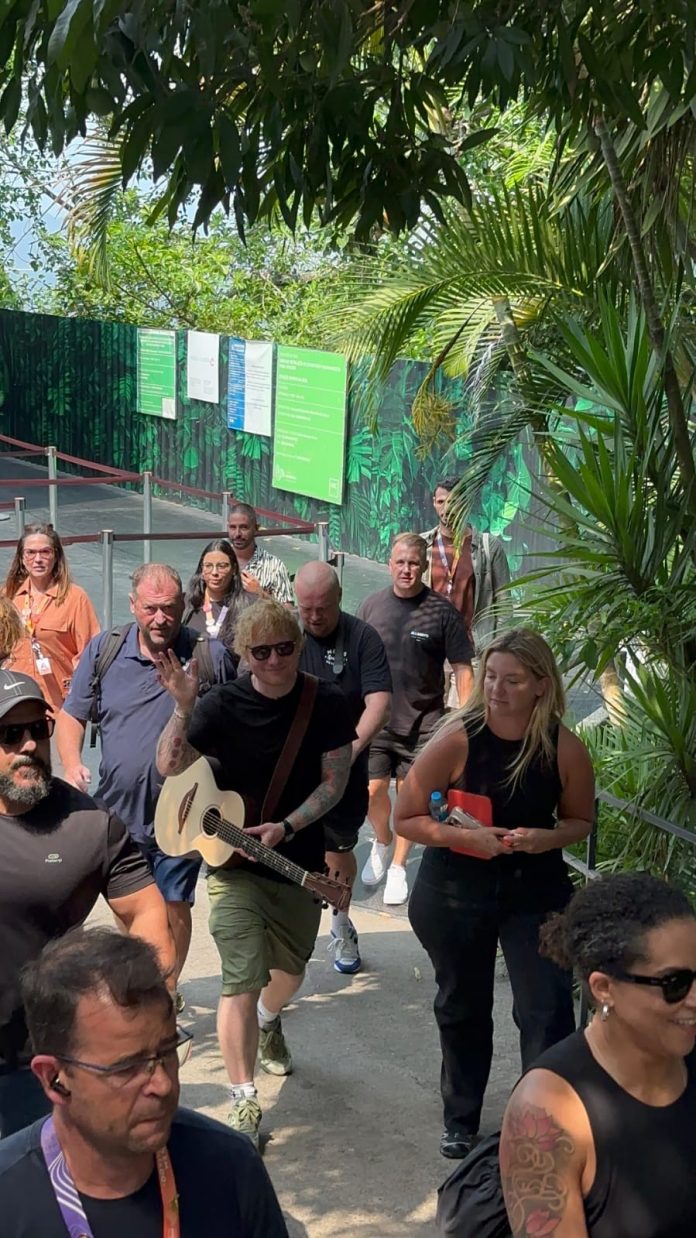Acompanhado de sua equipe e de um violão, Sheeran esteve no Parque Bondinho Pão de Açúcar e heliponto no Morro da Urca.