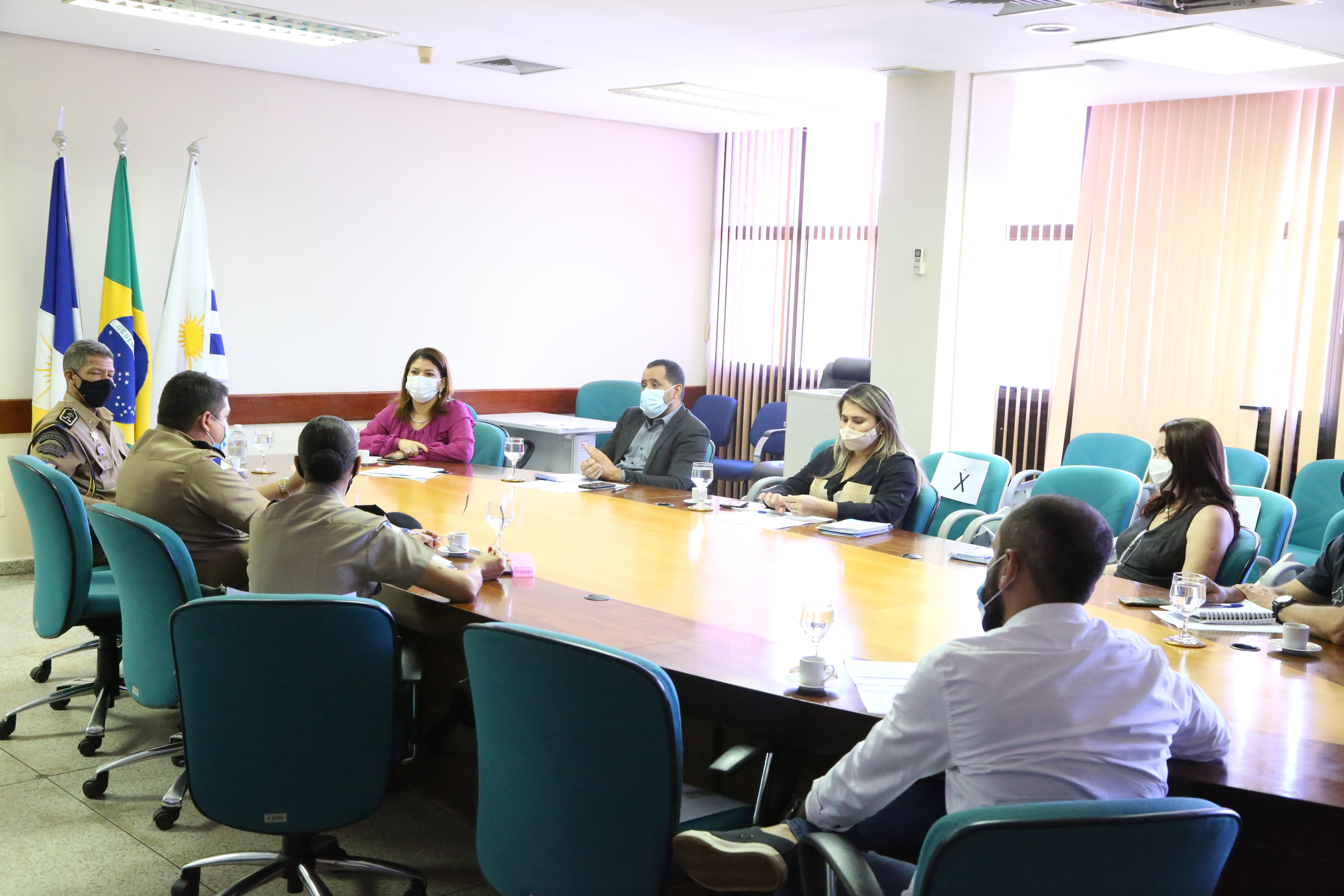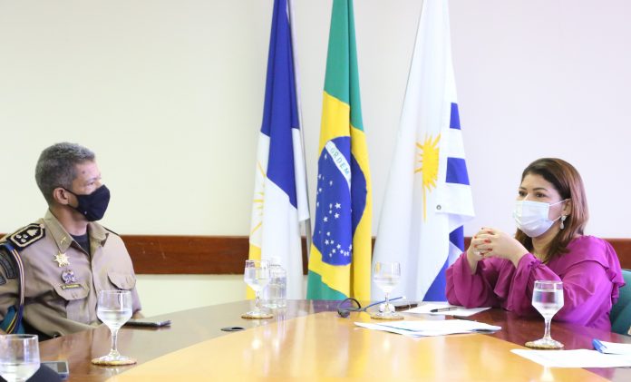 A secretária de Estado da Educação, Juventude e Esportes, Adriana Aguiar, e o comandante Geral da Polícia Militar, coronel Júlio Manoel da Silva Neto, reuniram-se nesta sexta-feira, 5, para alinhamento do trabalho conjunto nos Colégios Militares e nas unidades de ensino do Programa Nacional das Escolas Cívico-Militares. Essas escolas trabalham com a integração da pedagogia da rede estadual de ensino e a disciplina militar.