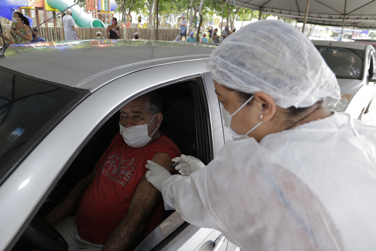 Em Drive thru, mais de 500 idosos tomam a segunda dose da vacina contra covid-19
