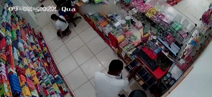 O empresário Carlos Marcelino diz que eles levaram até pertences de clientes. “A gente fica sem ação, se sente literalmente no chão. Levaram dinheiro, três celulares, a carteira com dinheiro do cliente, dinheiro da funcionária que estava junto com o celular, o capacete do cliente e esses perfumes”, disse.