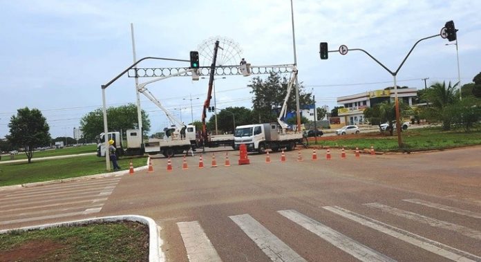 Nesta segunda-feira (18) as interdições são nos cruzamentos com a avenida LO-03. Instalação de portal decorativo na Avenida Teotônio Segurado