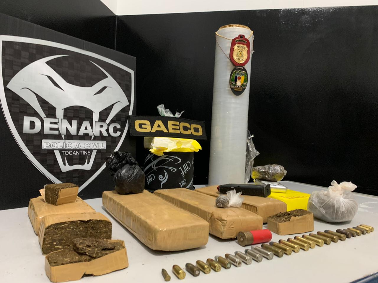 Em mais uma sequência de combate ao tráfico de drogas, a Polícia Civil do Tocantins, por meio da 1ª Divisão Especializada de Repressão a Narcóticos (1ª Denarc) de Palmas e em parceria com o Grupo de Atuação Especial de Repressão ao Crime Organizado (Gaeco) do Ministério Público Estadual do Tocantins (MPE-TO), desmontou um ponto de tráfico de drogas localizado na região sul de Palmas. O local era utilizado para armazenar e vender drogas de uma facção criminosa de atuação nacional. Realizada na noite desta terça-feira, 13, a ação resultou ainda na apreensão de 2,5 Kg de maconha; 1,5 Kg de cocaína; 25 munições de diversos calibres e carregador de arma, bem como insumos para produção e fracionamento de narcóticos. Três pessoas, sendo duas mulheres e um menor, foram conduzidas à Delegacia.