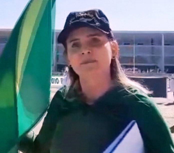 Ela foi gravada xingando enfermeiras que participavam de um protesto pacífico em que trabalhadores da saúde levaram cruzes para a frente do Palácio do Planalto para simbolizar as mortes pela Covid-19, no dia 1º de maio.